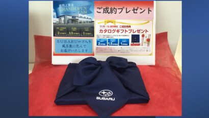 SUBARU オリジナル風呂敷に包んでプレゼントいたします。