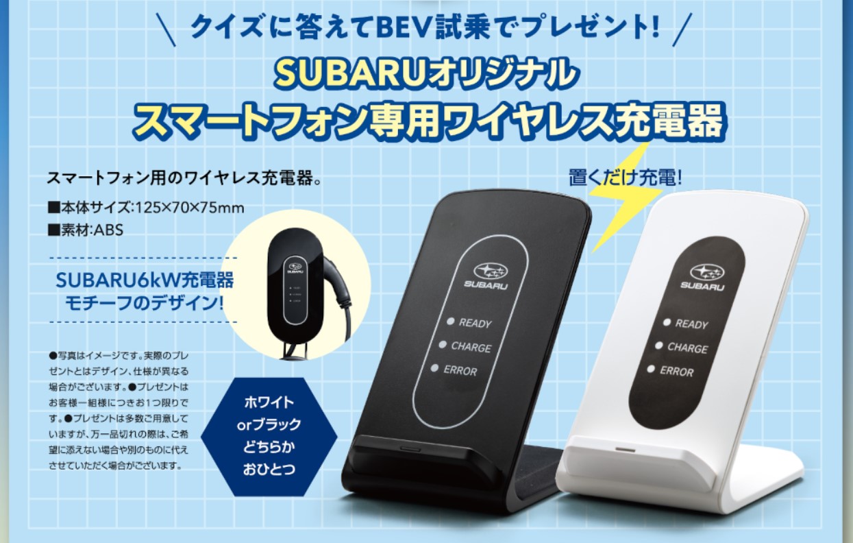 SUBARUオリジナルスマートフォン専用ワイヤレス充電器プレゼント!!